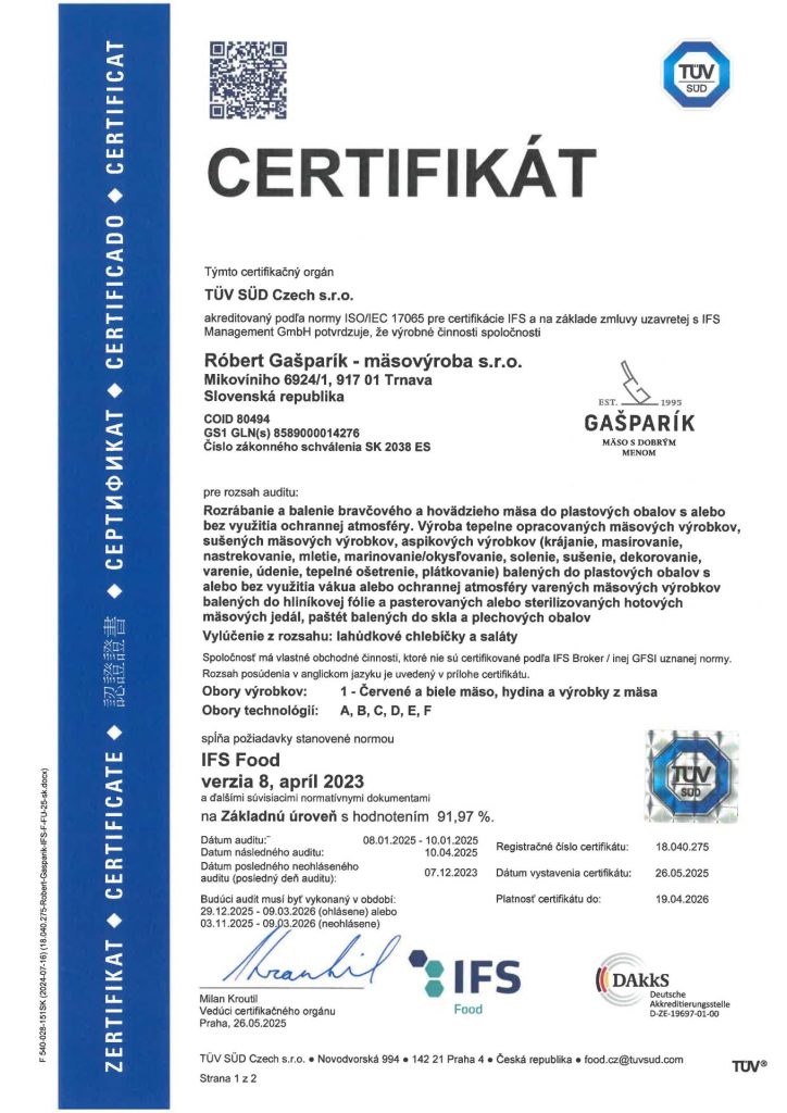 Sme lokálny výrobca mäsových výrobkov. Naša mäsovýroba spĺňa kritéria certifikátu ISF.