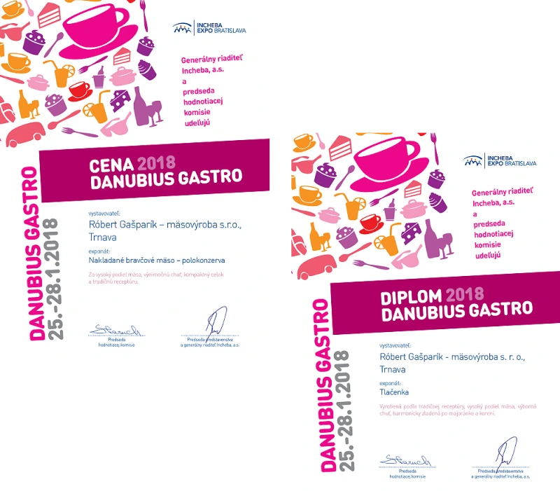 Na začiatku roku 2018 spoločnosť Róbert Gašparík - mäsovýroba získala za vystavovaný výrobok Nakladané mäso vo vlastnej šťave cenu Danubius Gastro 2018 za: „vysoký podiel mäsa, výnimočná chuť, kompaktný celok a tradičnú receptúru” ako najlepší exponát výstavy.