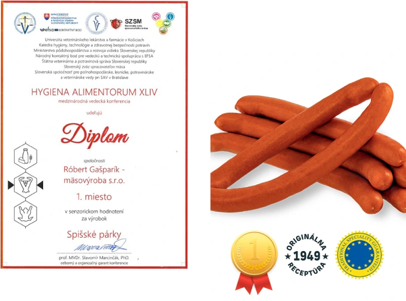 Na už 44. ročníku medzinárodnej vedeckej konferencie HYGIENA ALIMENTORUM, ktorá sa konala pod záštitou Ministerstva pôdohospodárstva a rozvoja vidieka Slovenskej republiky v polovici mája 2024 na Štrbskom Plese, ocenila komisia zložená z odborníkov a vedcov 1. miestom výrobok spoločnosti Róbert Gašparík – Mäsovýroba Spišské párky. Viac sa dočítate tu